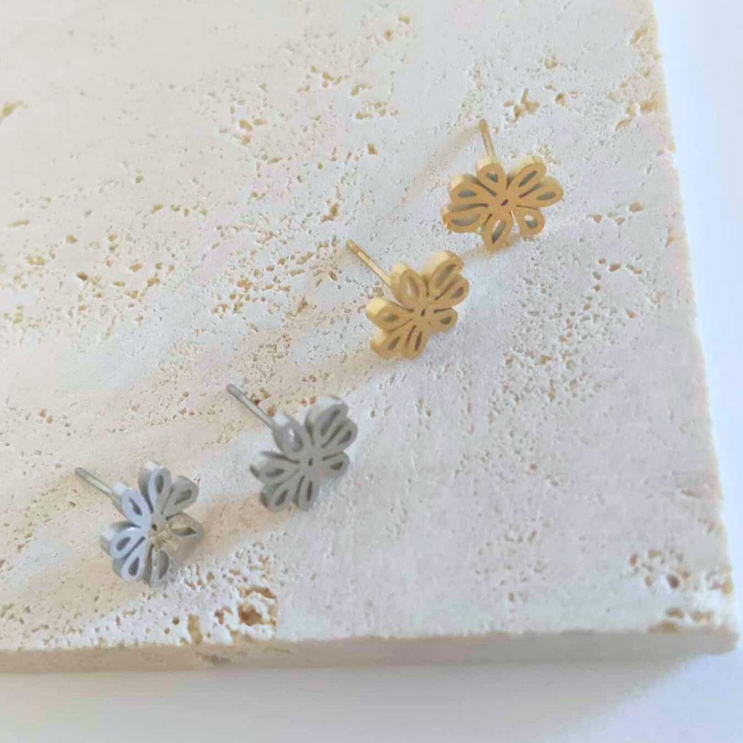 Brincos em aço inoxidável flores