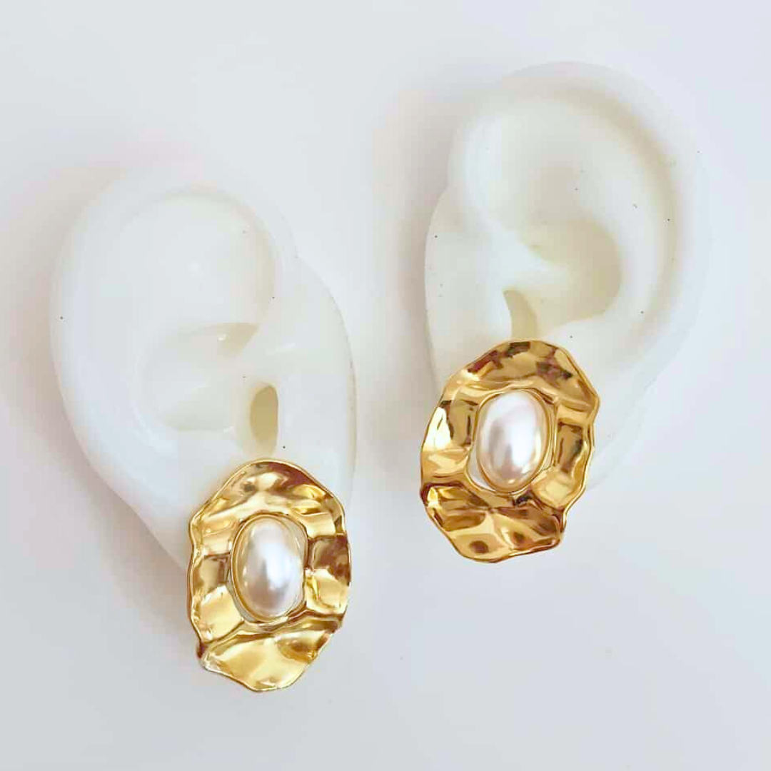Brincos em aço inoxidável com pérola