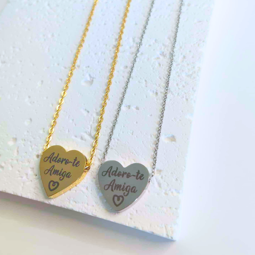 Colar em aço inoxidável, simples e moderno, perfeito para celebrar a amizade. Uma peça durável e elegante, que representa o carinho, a conexão e a lealdade entre amigos especiais.
