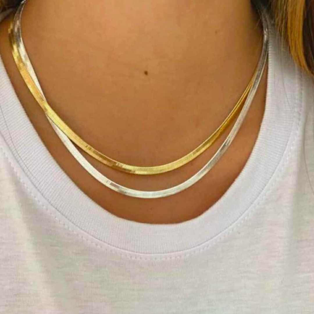 Colar em aço inoxidável com malha batida perfeita para uso com outros fios