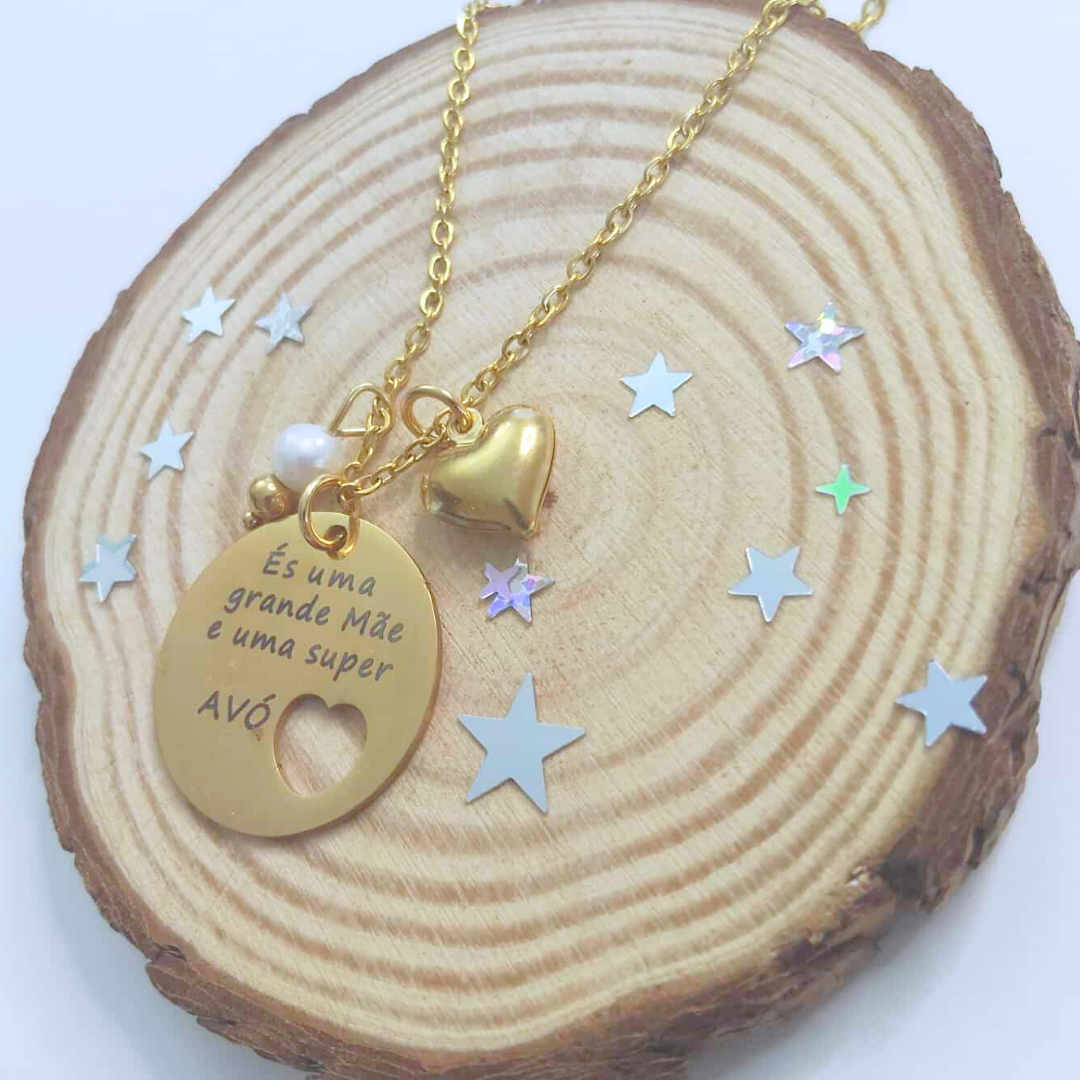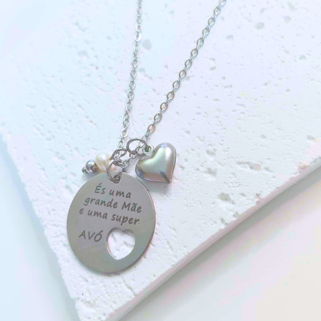 Colar em aço inoxidável es uma GRANDE MÃE e uma SUPER AVÓ