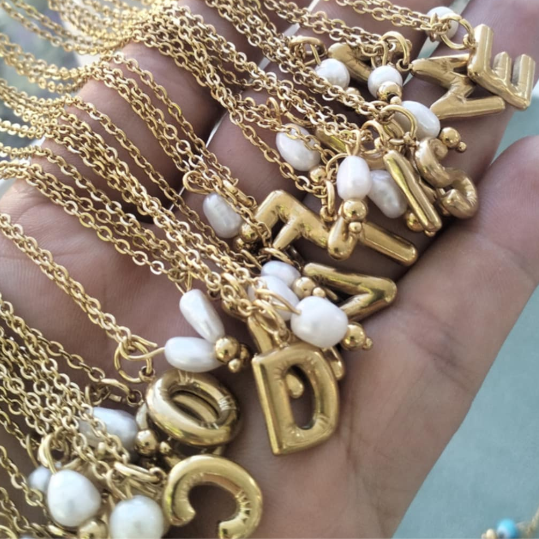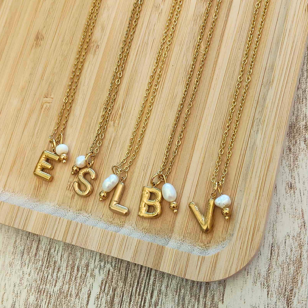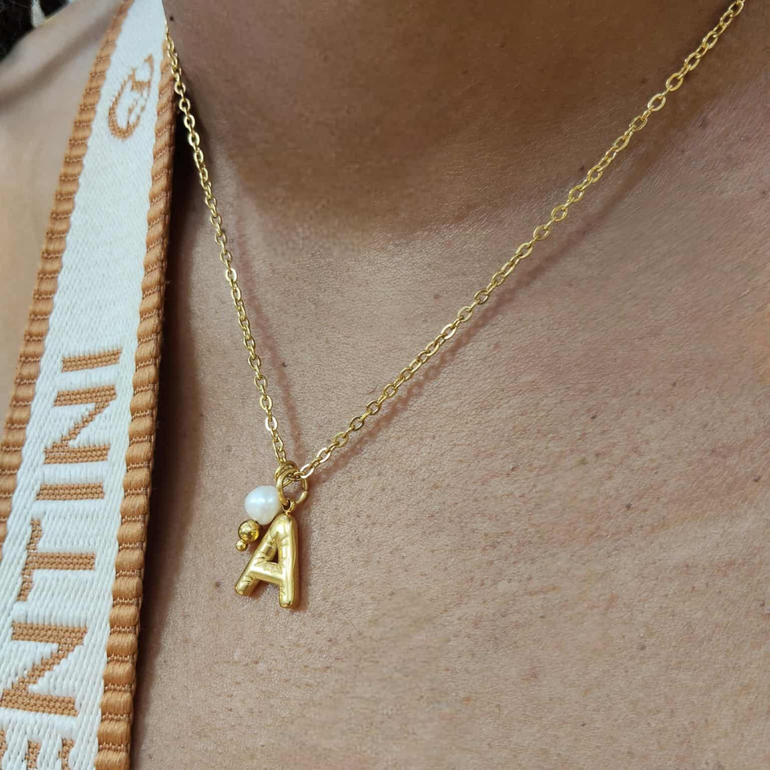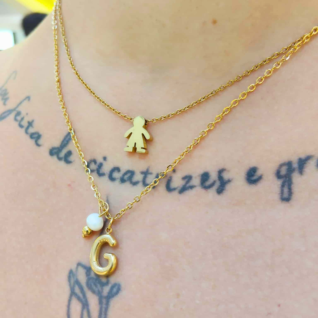 Colar em aço inoxidável com inicial acompanhado dom pérola de água