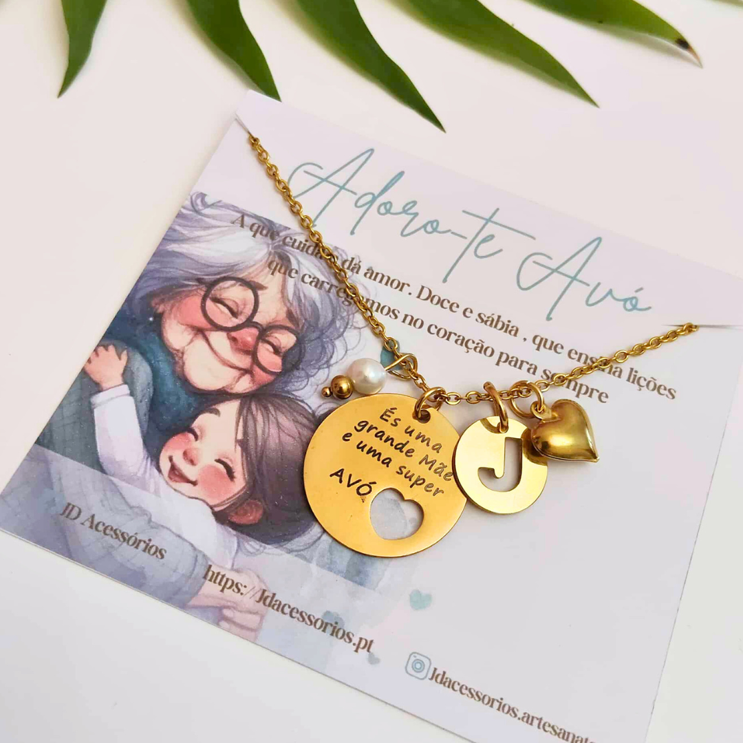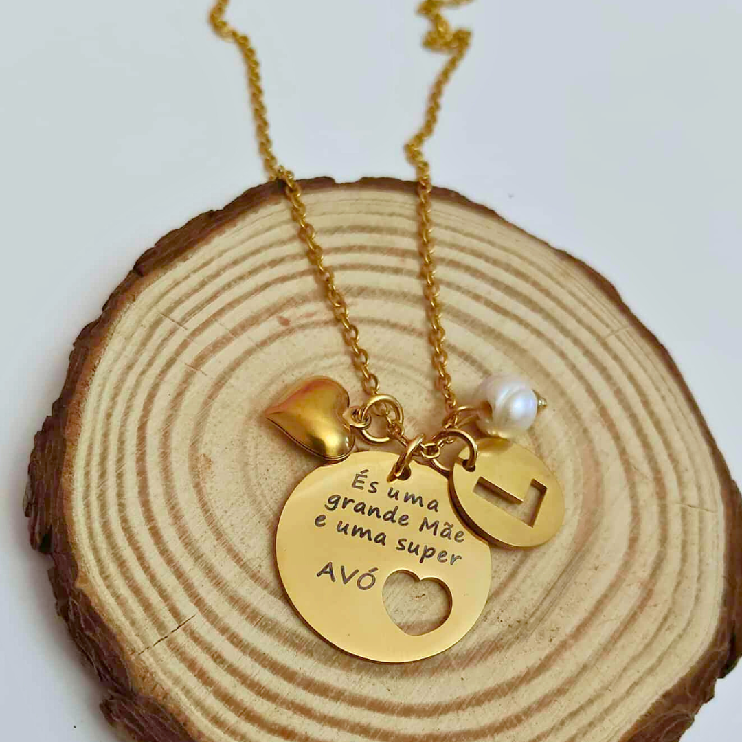 Colar em aço inoxidável com Medalha es uma grande mãe e uma super avó